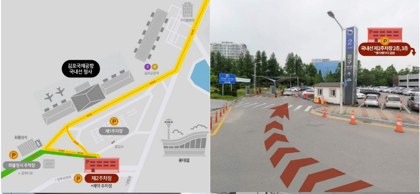 국내선 청사 제 1주차장과 화물청사 주차장이 아니라, 제2주차장으로 오셔야 합니다.