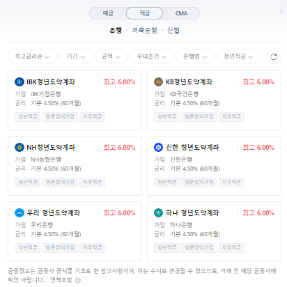 비과세혜택도 누리면서, 조건이 맞는 청년들은 최대 6% 금리 혜택까지 얻어가는 목돈모으기가 가능합니다.