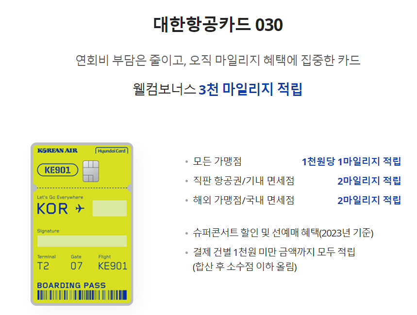 ✔ 대한항공 현대카드 030