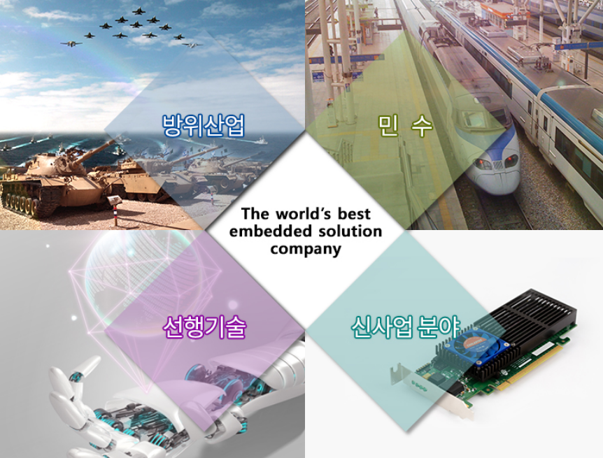 주요 제품인 싱글보드 컴퓨터는 상용 컴퓨터와 달리 여러 부품을 단일회로기판으로 구성해 열악한 환경 조건에서도 구동이 가능한 방위산업용 컴퓨터입니다.