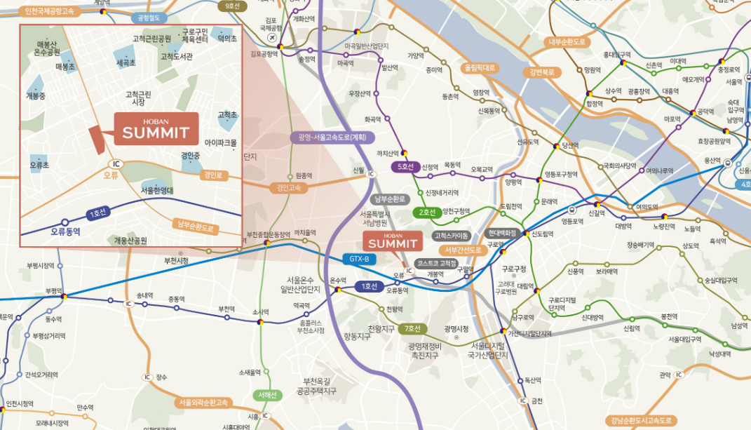 개봉5구역 호밧써밋 재건축 위치입니다. 오류IC에도 가깝고 오류동역 1호선에서도 가깝고, 주변 고척근린시장과 고척도서관도 가깝고, 목동 학원가도 대중교통으로 갈 수 있기에 교통과 자녀들의 교육을 위해서도 좋은 위치입니다.
