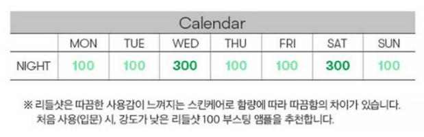 리들샷은 미세한 바늘이 들어가있기 때문에 따끔한 사용감이 느껴질 수 있습니다. 처음 사용시에는 낮은 강도로 리들샷 100을 사용하시면 됩니다. 일주일간 리들샷 100과 300을 사용하신다면 리들샷 100으로 2일 정도 사용, 리들샷 300으로 1일 사용 번갈아 가면서 사용해주시면 됩니다.