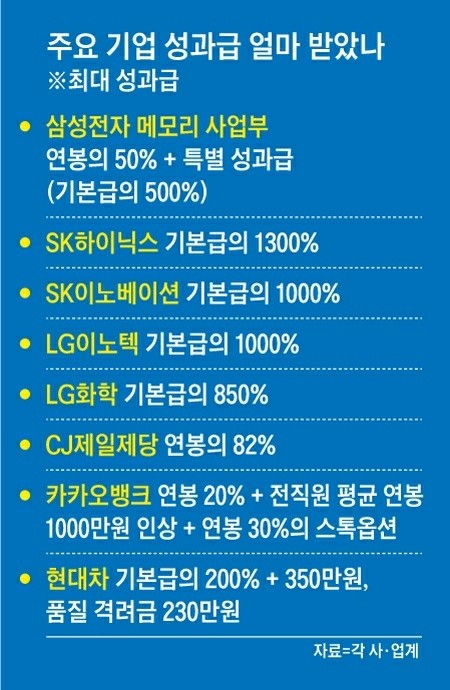 | 주요 기업 성과급 (역대급 최대 성과급) |