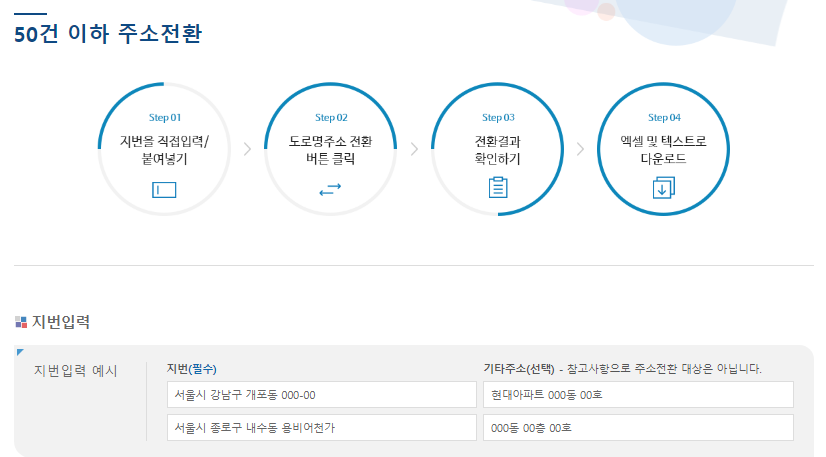 50건 이하 도로명 주소 전환 방법
