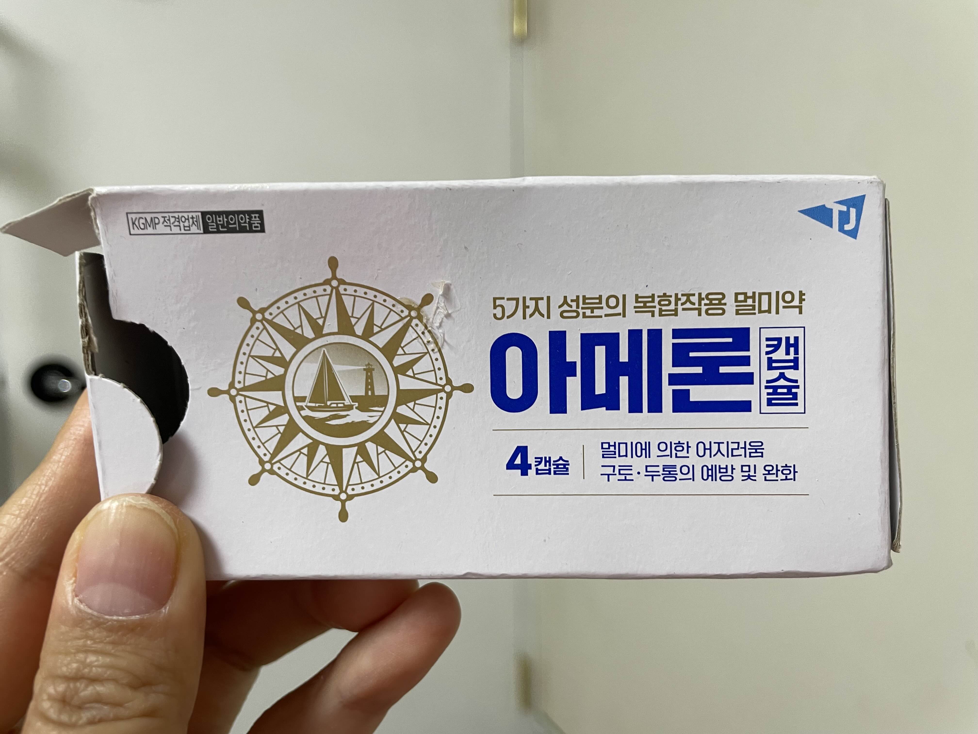 집 근처에 아메론 멀미약 파는 곳이 있길래 토요일 출국이라 금요일 퇴근길에 부리나케 달려가서 구매했답니다.