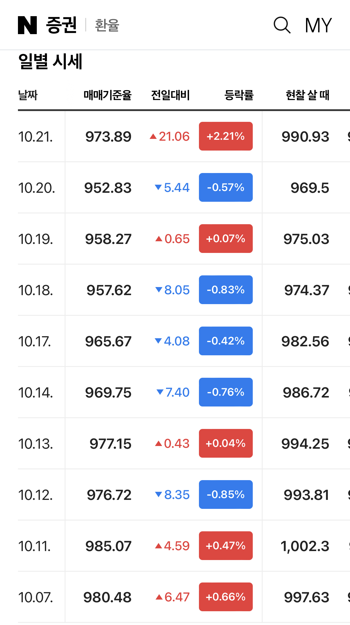 오 며칠 전엔 1엔 952원 까지 내려갔네요. 그때 샀어야했는데! 지금 엔저이니 환차익 노리시는 분들도 많은 거같은데.